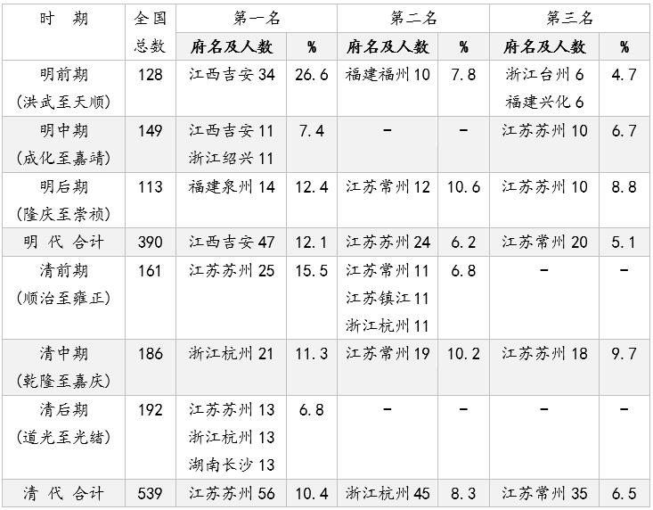 1. 明代前期吉安府进士全国占比在历代大一统王朝都属第一