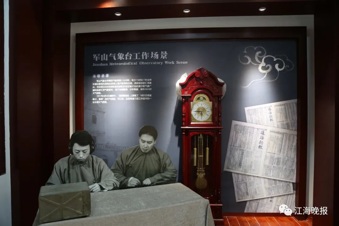 在气象台楼内,游客可以看到体现军山气象台全貌的微缩沙盘,旁边有张謇设立军山气象台的概述:气象台宜设军山上,不仅有关风景,且于天气预报有益。因军山南临长江,与江南的福山对峙,形势绝佳。江中来往船舶,遥望军山有台,当注意天气预报。必要时,山上可悬挂预报标号。在通城及东乡民众,远望军山有台,亦可提高重视天气预报的观念。所以台设军山上,可以瞭远听远,对天气预报是有裨益的。能加强天气预报,也于农业有裨。