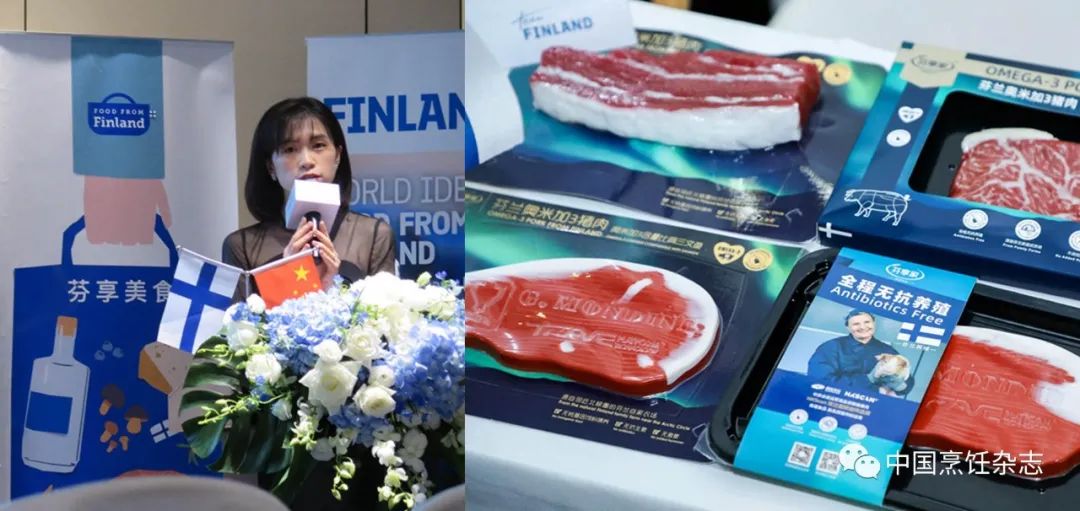 倍莲倍芬食品有限公司总经理胡蔚珺介绍HKScan猪肉。这款猪肉在中国市场由中芬合资的倍莲倍芬食品有限公司进口出售,据公司总经理胡蔚珺透露,他们计划将HKScan猪肉的年产量从2019年的3000吨在2021年提高到9000吨,尽管今年遭遇新冠肺炎疫情,但其销量仍按计划发展。她表示,“我们在中国建立了很好的客户基础,目前主要在C端市场,但还没有稳定合作的餐饮渠道,希望在长期友好合作的基础上与客户共同成长。”