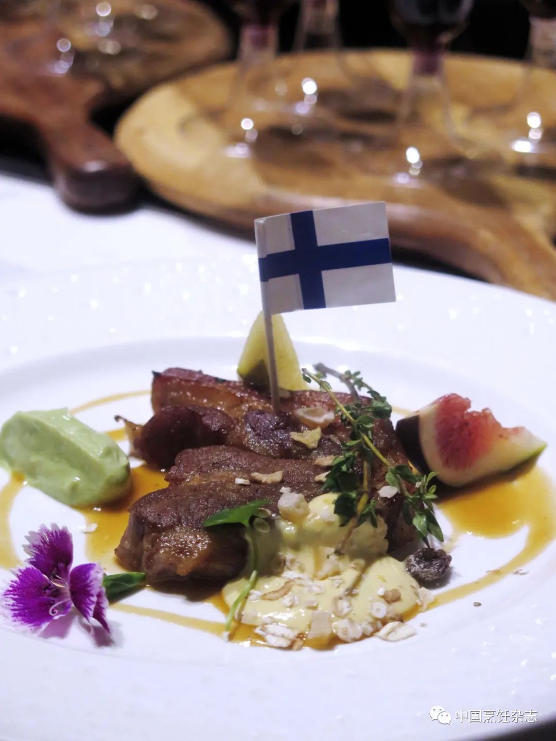 在领略过芬兰各类优质的食品和饮料产品后,嘉宾们一同分享来自北京1910紫色勋章的国宴大厨周卫为庆祝中芬建交70周年特别制作的菜式。