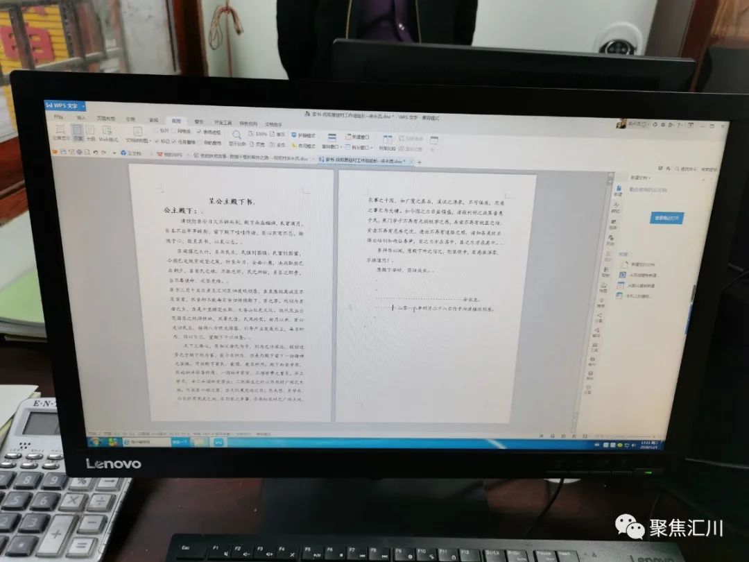 微信公众号“聚焦汇川”介绍:2018年3月5日,距离女儿出生仅有一个月,余永流主动请缨来到泗渡镇观坝社区驻村。那时,他的妻子吴学义才从乡村小学考到新浦新区第四小学不到半年。女儿出生仅21天,余永流在观坝社区二楼邻街的那间办公室里写下了《呈公主殿下书》。透过字里行间,我们可以感受到一个父亲对女儿的疼爱,以及对未能陪伴女儿心生的愧疚。