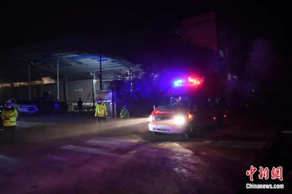 救援车辆在进行救援工作。陈超摄吊水洞煤矿位于重庆永川区茶山竹海街道办事处安溪村,始建于1975年,1998年转制为私营企业,2008年改扩建,设计生产能力12万吨/年,核定生产能力12万吨/年。