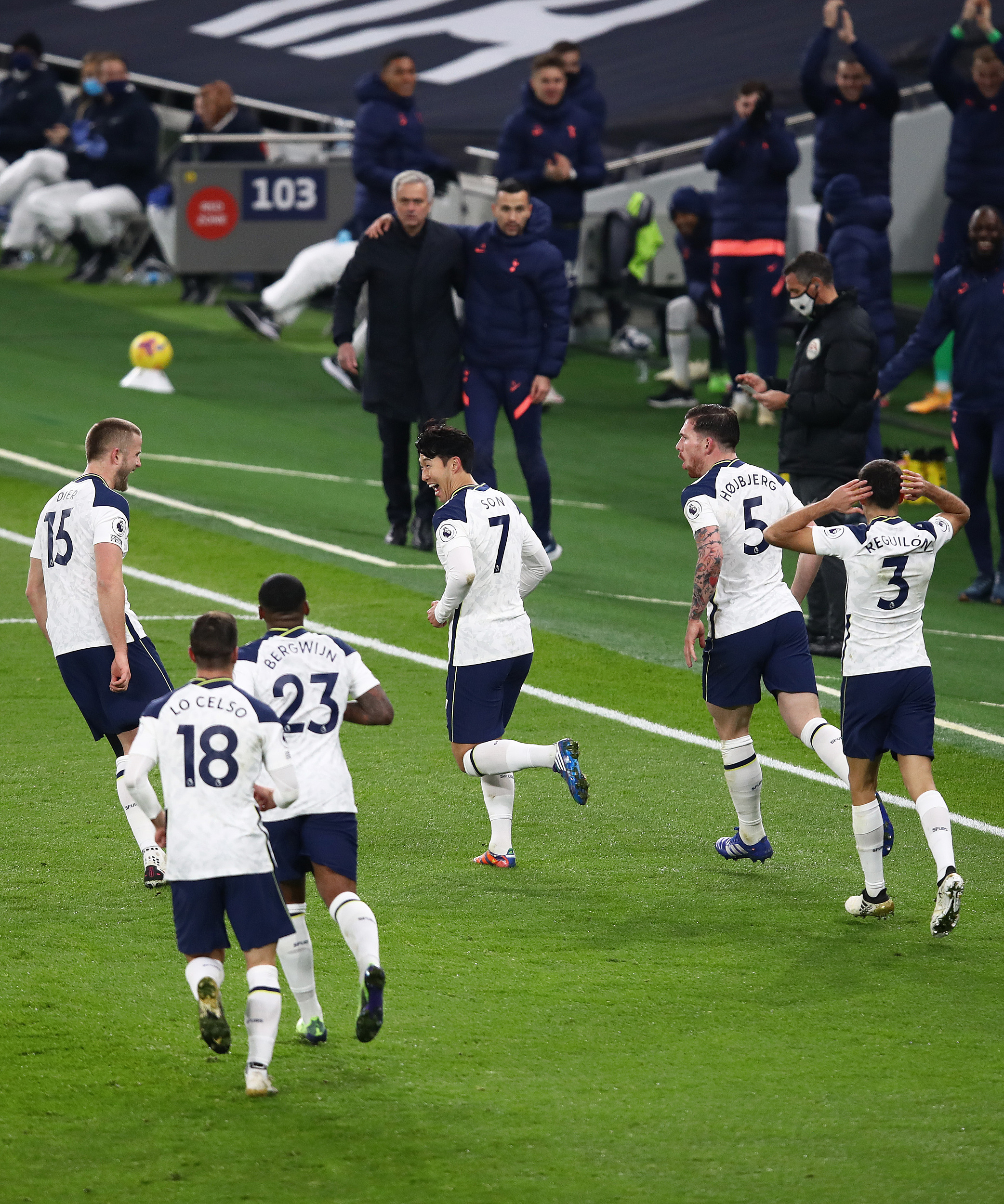 目睹孙兴慜进球,穆里尼奥霸气庆祝。