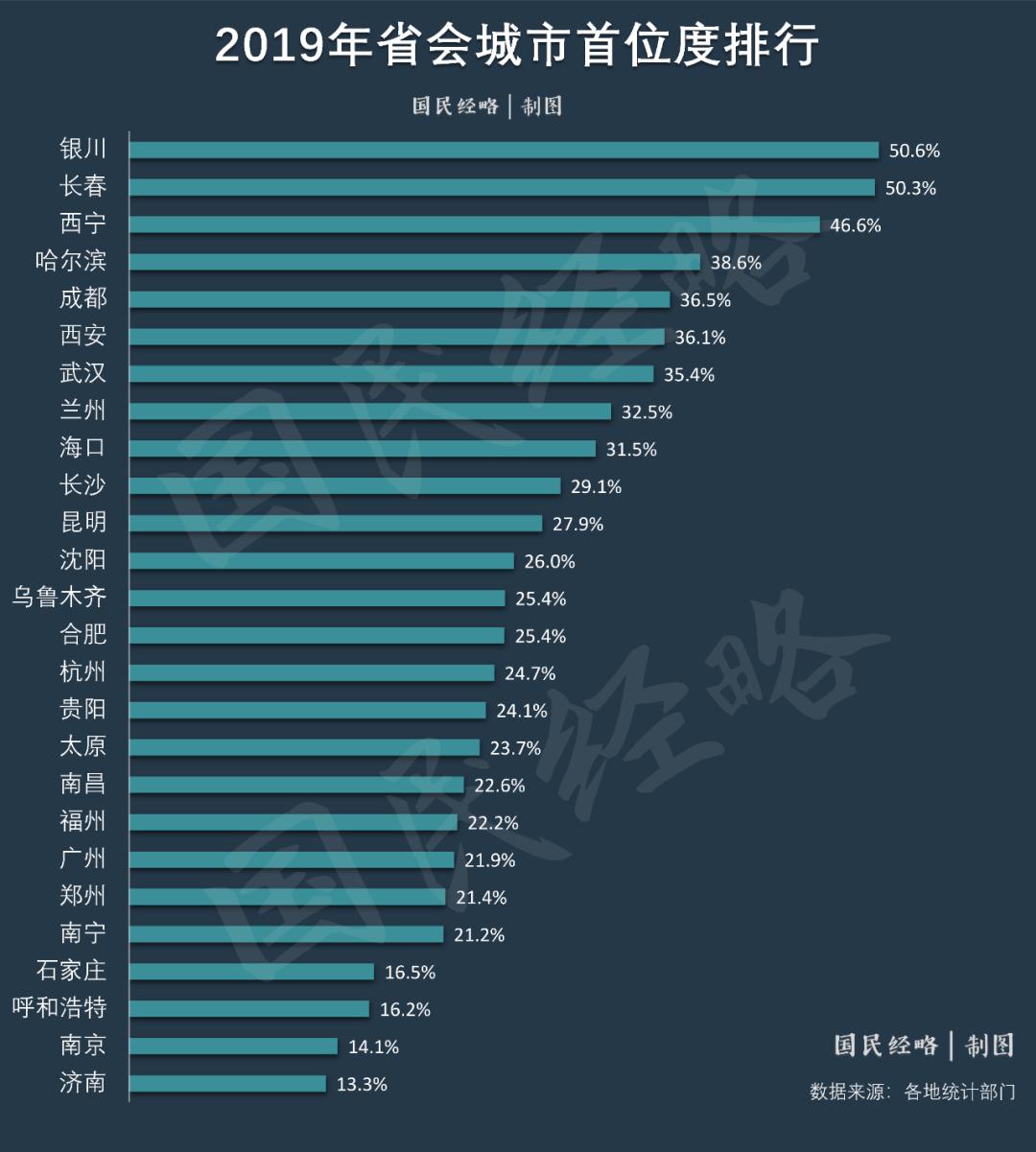 不过,长春并非没有底气。2020年初,长春代管公主岭市,从而开启做大强省会的第一步。事实上,从首位度来看,长春在2019年就已超过50%,仅次于银川,一城独大的地位早已奠定。