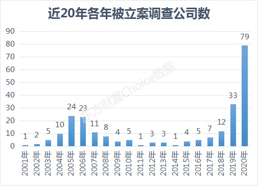 而根据证券时报的统计,年内迄今的79家公司被立案调查,已创了近20年之最,是2019年33家的2.4倍。