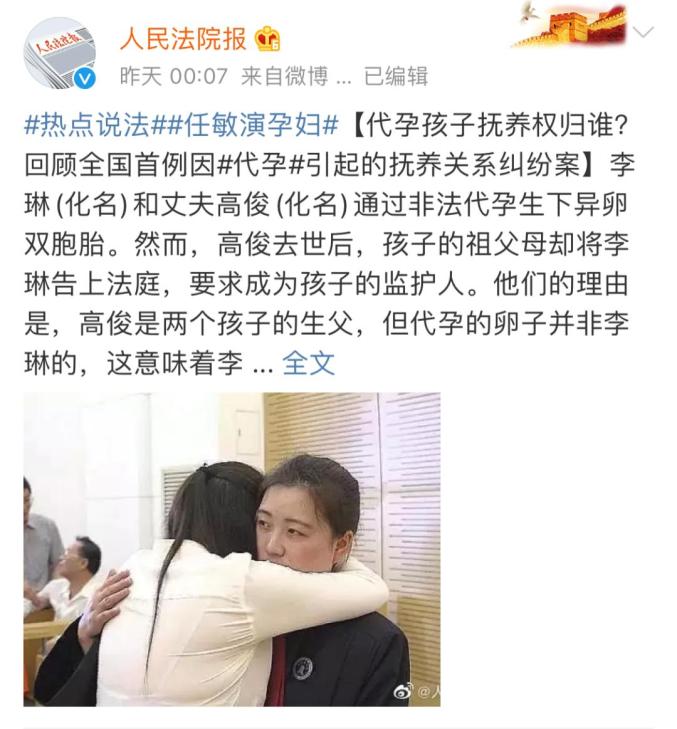 人民法院报还发文回顾了全国首例因代孕引起的抚养关系纠纷案。