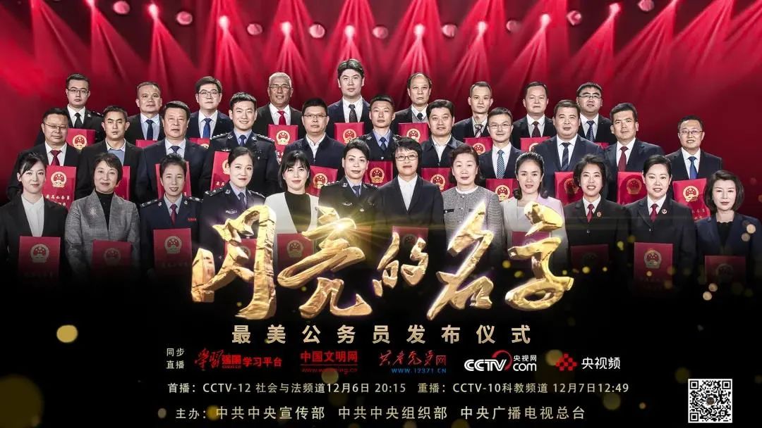 图为《闪亮的名字——最美公务员发布仪式》现场为培育和树立公务员先进典型,展示新时代公务员队伍精神风貌,由中共中央宣传部、中共中央组织部、中央广播电视总台共同主办的《闪亮的名字——最美公务员发布仪式》已于12月6日在央视社会与法频道(CCTV-12)20:15播出,12月7日12:49科教频道(CCTV-10)将重播。学习强国、中国文明网、共产党员网、央视网、央视频将同步直播。