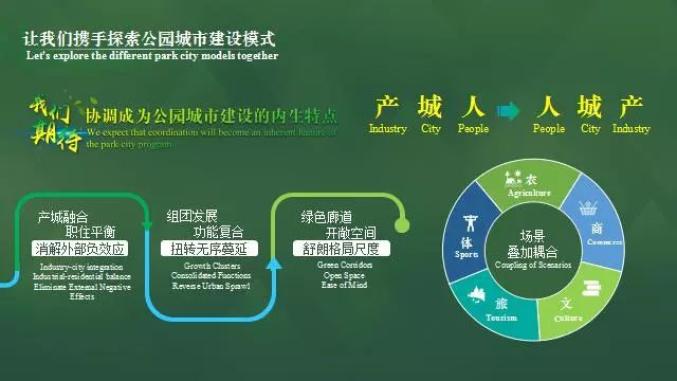 让我们携手探索公园城市建设模式。公园城市的建设实践没有现成的模式,需要凝心聚智、共同探索。我们期待,协调成为公园城市建设的内生特点,产城人的建设逻辑得以纠正,人城产的发展理念成为共识,精准科学的城市规划造就城市独特的风貌特质,别具匠心的城市设计破解“千城一面”的简单重复,产城融合、职住平衡持续消解特大城市的外部负效应,组团发展、功能复合彻底扭转城市“摊大饼”式无序蔓延,绿色廊道、开敞空间全面舒朗市民生活的格局尺度,生活场景、消费场景、生产场景叠加耦合推动农商文旅体的融合发展,实现公园城市生长发育的整体性、持续性。