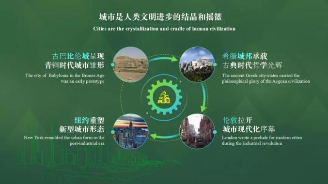 1城市是人类文明进步的结晶和摇篮,古巴比伦城呈现青铜时代两河流域的壮丽图景,古希腊城邦承载西方文明古典时代的哲学光辉,伦敦拉开工业文明时代城市现代化的时代序幕,纽约探索塑造后工业文明时代新型城市形态,我国历史上也涌现出刻满古老甲骨文字的“殷都”、辉映锦绣盛唐气象的长安、见证千年风流繁华的北京、穿越近代跌宕沉浮的上海、傲立改革开放潮头的深圳等独具中国特色、承载中华文明的城市。