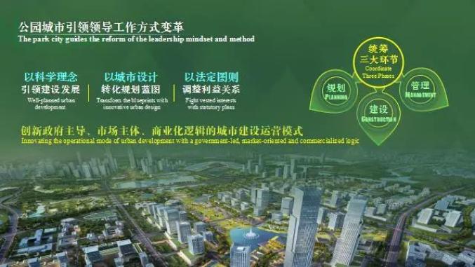 公园城市引领领导工作方式变革,统筹规划、建设、管理三大环节,始终以科学理念引领建设发展、以城市设计转化规划蓝图、以法定图则调整利益关系,创新政府主导、市场主体、商业化逻辑的城市建设运营模式,全面提高城市工作的系统性。