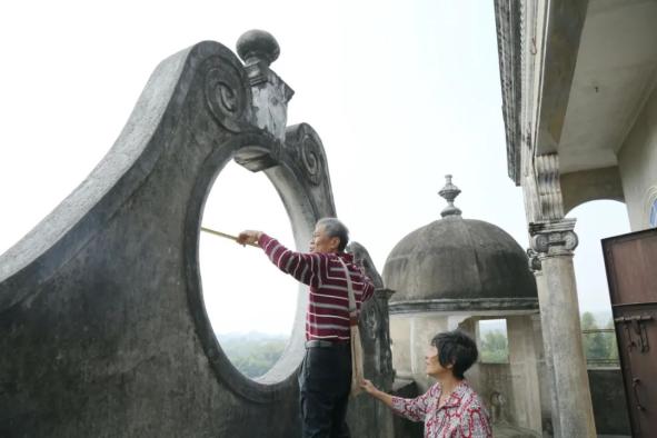 点赞夫妇俩与铜碉楼作品及原型瑞石楼合照~