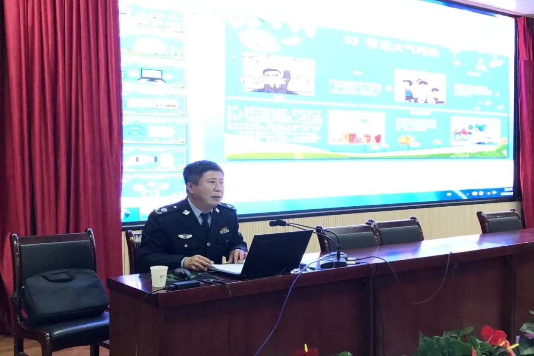 活动以“我为冬季大气污染防治做什么”为主题,通过播放PPT图片展示、视频播放等形式,对大气污染简介、大气污染现象、常见大气污染、大气污染后果、防治污染后果等内容进行了直观、生动地讲解,引导学生树立生态环境保护理念,明白保护环境、人人有责,保护大气环境重在细节的道理。