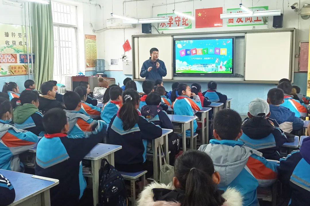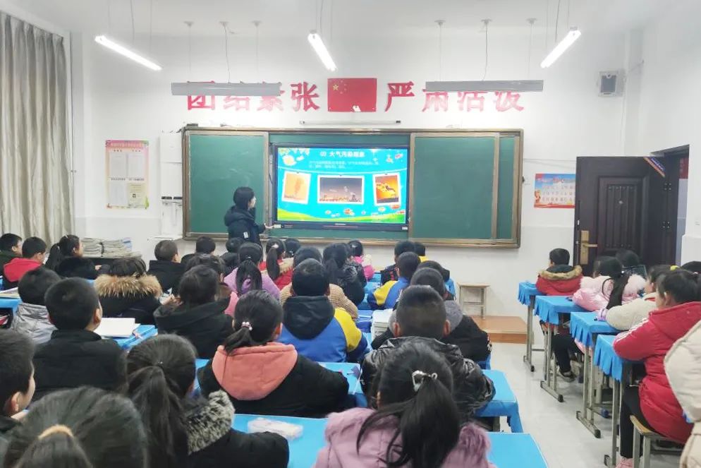 武功县生态环境武功分局来到武功县南仁中心小学,传递绿色环保理念,给学生带来了一堂以“我为冬季大气污染防治做什么”为主题的环保课。