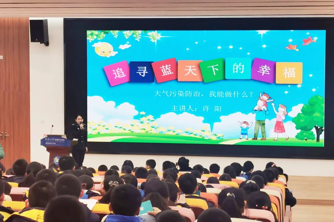 高新区生态环境高新分局走进咸阳高新存志学校,以生活中如何为大气污染防治做贡献为重点,通过知识解读、有奖问答环节,为孩子带来一堂别开生面的环保课。