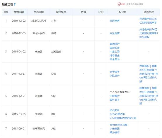 从2013年创立以来,万魔声学经历了多轮融资,除了A轮的小米、顺为资本、淡马锡之外,后续引入了IDG资本、新加坡政府投资公司GIC、纪源资本GGV等一众明星资本。