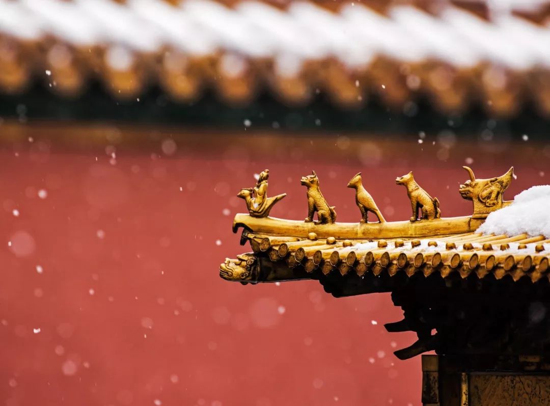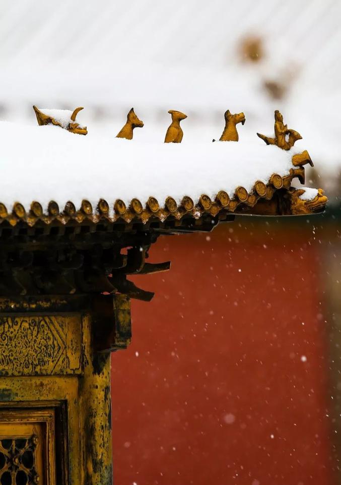 看白雪落在红色的宫墙之上,故宫的琉璃黛瓦,腊梅飘香,白雪落满狭长的甬道,编织成一阙醒不来的清梦。