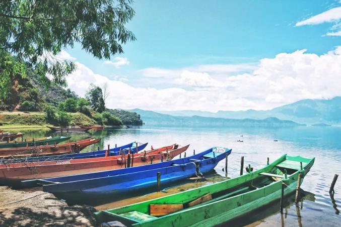 十二月,你应该飞去泸沽湖边喂海鸥,坐着猪槽船泛舟蔚蓝的泸沽湖上。