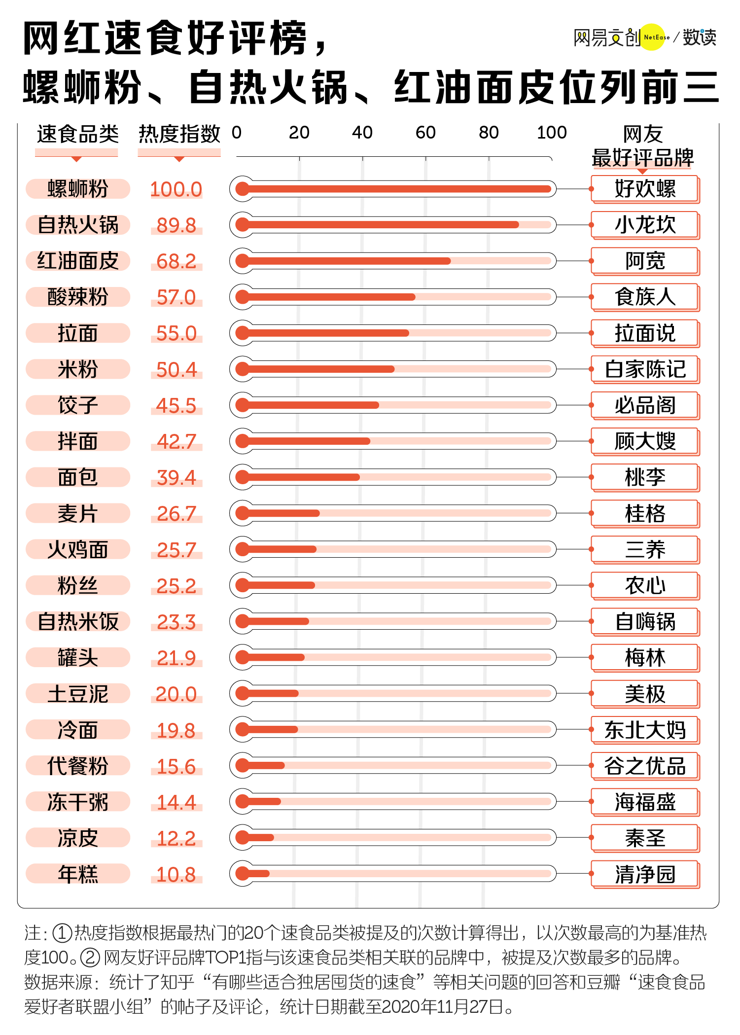 我们统计了知乎上“有哪些适合独居囤货的速食”“除了方便面外,有哪些速食值得推荐?”等问题的回答和豆瓣“速食食品爱好者联盟小组”的讨论帖,整理出上千位网友推荐的速食清单。