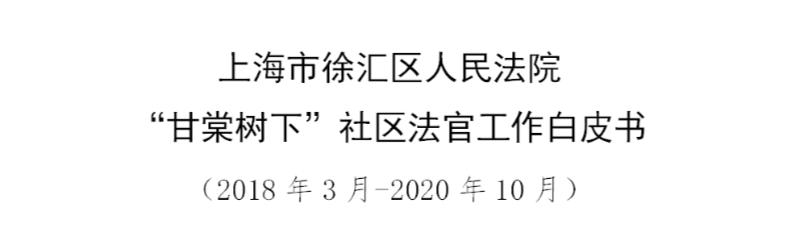 为贯彻落实党的十九大提出的“加强和创新社会治理,打造共建共治共享的社会治理格局”,切实贯彻落实好习近平总书记提出的“坚持把非诉讼纠纷解决机制挺在前面,从源头上减少诉讼增量”的重要指示,徐汇法院紧跟时代需求,不断创新完善诉调对接工作机制,将新时代“枫桥经验”与审判工作实际相结合,于2018年3月12日成立“甘棠树下”社区法官工作室。社区法官工作室拓展了人民法院参与社区矛盾化解和社会治理创新的路径,是司法为民的重要举措。工作室成立两年多来,以“完善工作机制,下沉司法资源,源头化解矛盾,打造徐汇特色司法服务品牌”为目标,积极主动优化服务,尽心尽责为民解忧,取得良好社会效果。自成立至2020年10月,社区法官工作室共审查人民调解协议1572份,出具调解书和司法确认裁定书1103份, 提供“涉老案件亲情服务”65次,参与现场调解117次,组织开展法律讲堂63次,其中开展在线“云课堂”5次,刻盘录播课堂1次(制作48个课件,主要包括婚姻家庭、相邻关系、房屋租售等专业领域,套路贷、扫黑除恶、妇女儿童维权、校园安全防范、老年人防骗等热点问题,立案管辖、执行工作等诉讼流程),提供线上及线下法律咨询与答疑210余次,听众及咨询人数合计5100人次。拍摄普法短视频(剧)14个。发布司法建议1篇。