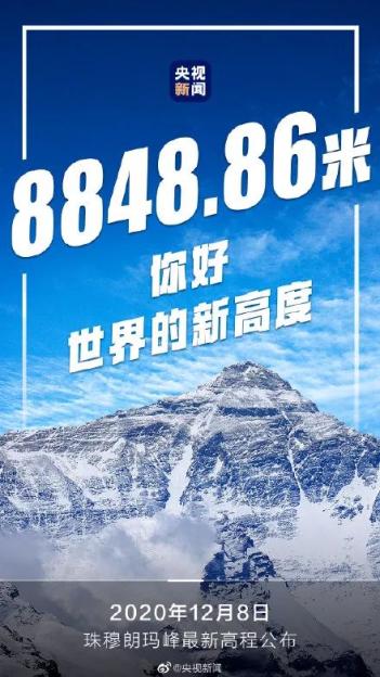 2020年12月8日,中尼联合宣布测量的珠峰“新身高”——8848.86米。回顾此前珠峰高程测量历史,中国对珠峰共进行过6次大规模测绘和科考。1975年5月27日,中国首次测得珠峰8848.13米的岩面高度。2005年5月22日,中国再次开展珠峰高度测量工作,经过严密计算,测得珠峰顶岩石面海拔高程8844.43米。网友:珠峰长个儿了!