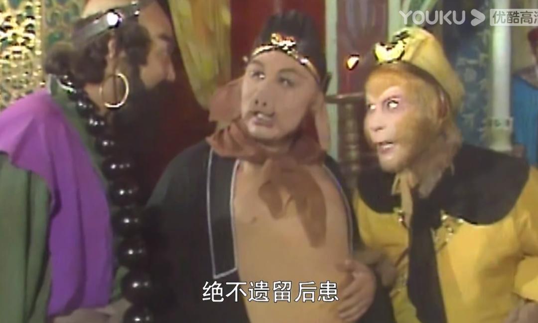 86版《西游记》截图,孙悟空和师父和玉华州国王汇报成果时说“一定打扫干净,绝不遗留后患”和黄狮精洞里的小妖们命运相似的,还有黄袍怪和宝象国公主的两个孩子。不过妖与人生的孩子不知该算妖还是人。总之,两个十岁左右的幼童因父母恩怨无辜丧命,谁不叹句冤呢?