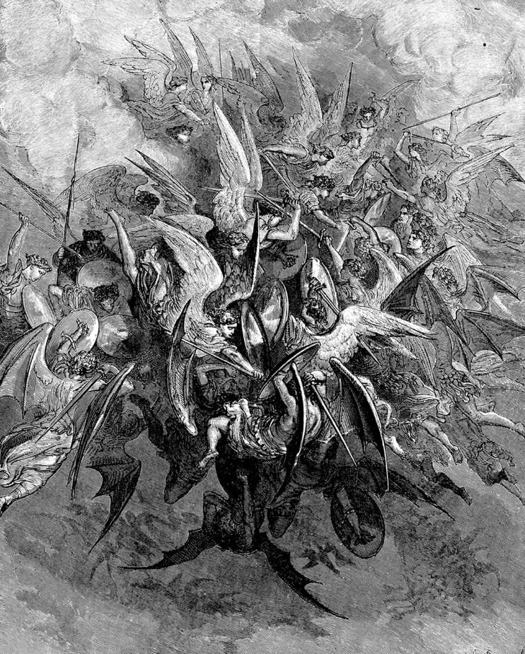 《圣经》里上帝创造万物,以自己的形象创作亚当,并用亚当的肋骨造出夏娃,夏娃不敌蛇的蛊惑而吃了知识树的果实,后又劝亚当吃下,结果被逐出伊甸园的故事,想必大家都耳熟能详。《失乐园》的一大革新就是以撒旦为主角,让《圣经》中着墨不多的撒旦有了极为丰满的形象。他在众天使簇拥上帝、歌颂上帝之时,因不满上帝一副万物之主宰的派头,集结天庭里1/3的天使兵力,与上帝的天兵天将大战3天,结果兵败,被打入地狱。在地狱建造万魔殿,复仇之心仍然不死,在众天使商议是鲁莽出战还是委屈求和时,提出第三个方案,即去上帝新建的世界打探,以毁灭那个世界来打击天庭,并勇于孤军出战,冲破重重阻力,来到伊甸园。后利用自己的智谋,成功引诱人类堕落。