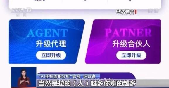“AI手相面相分析”账号 运营者:我们给你开通合伙人权限。你拉一个人进来测,我们就给你分钱,最高我们可以给你90%的分成。想要获得更高比例的提成,就要从“普通会员”升级为“高级代理”,或者是“合伙人”,相应需要缴纳99元或199元的“升级费”,这部分钱也是此类网络占卜账号的主要收入来源。