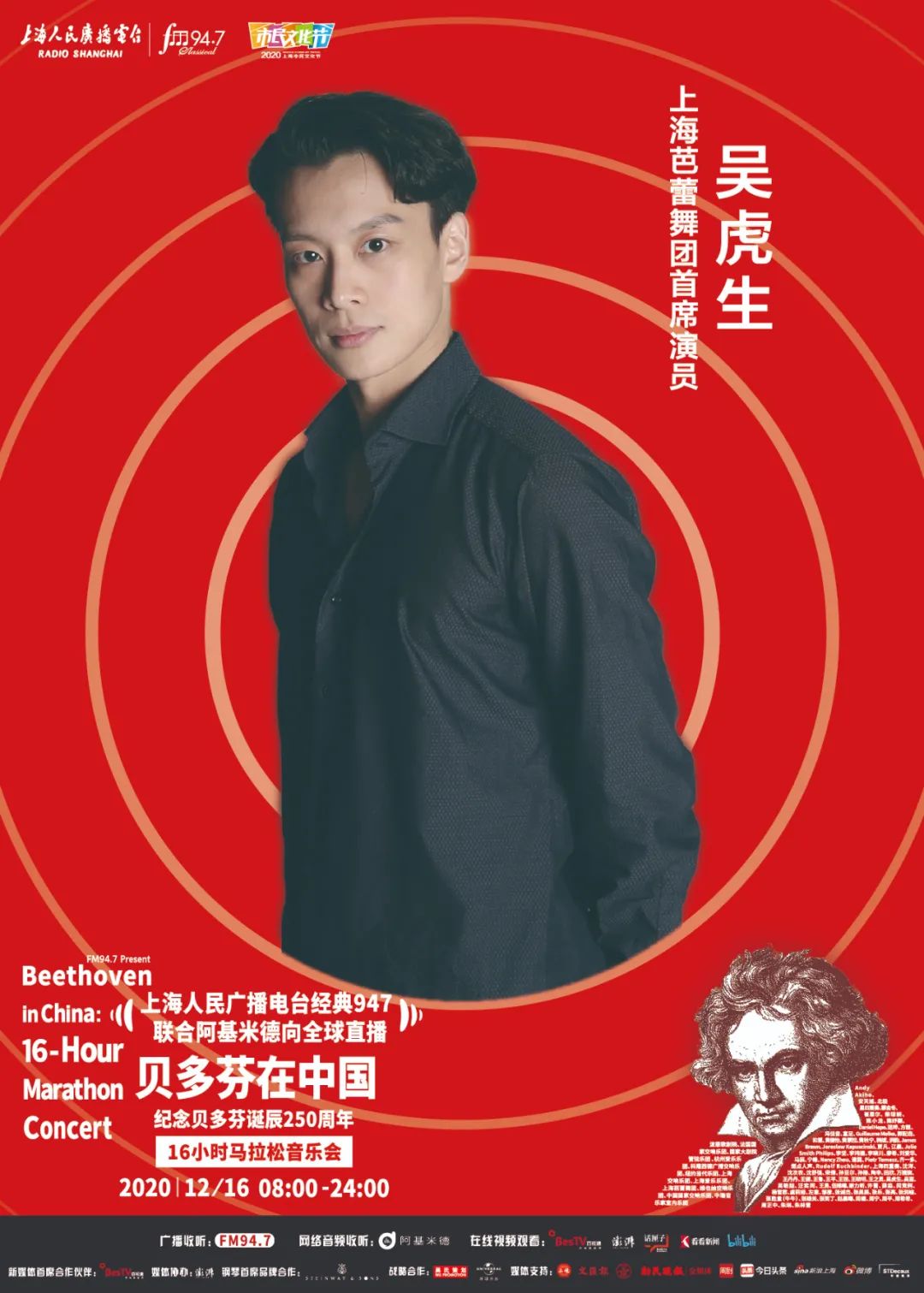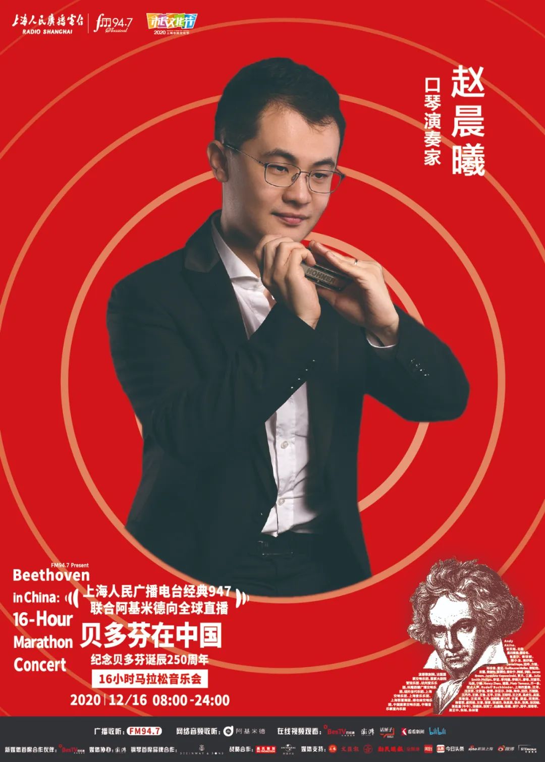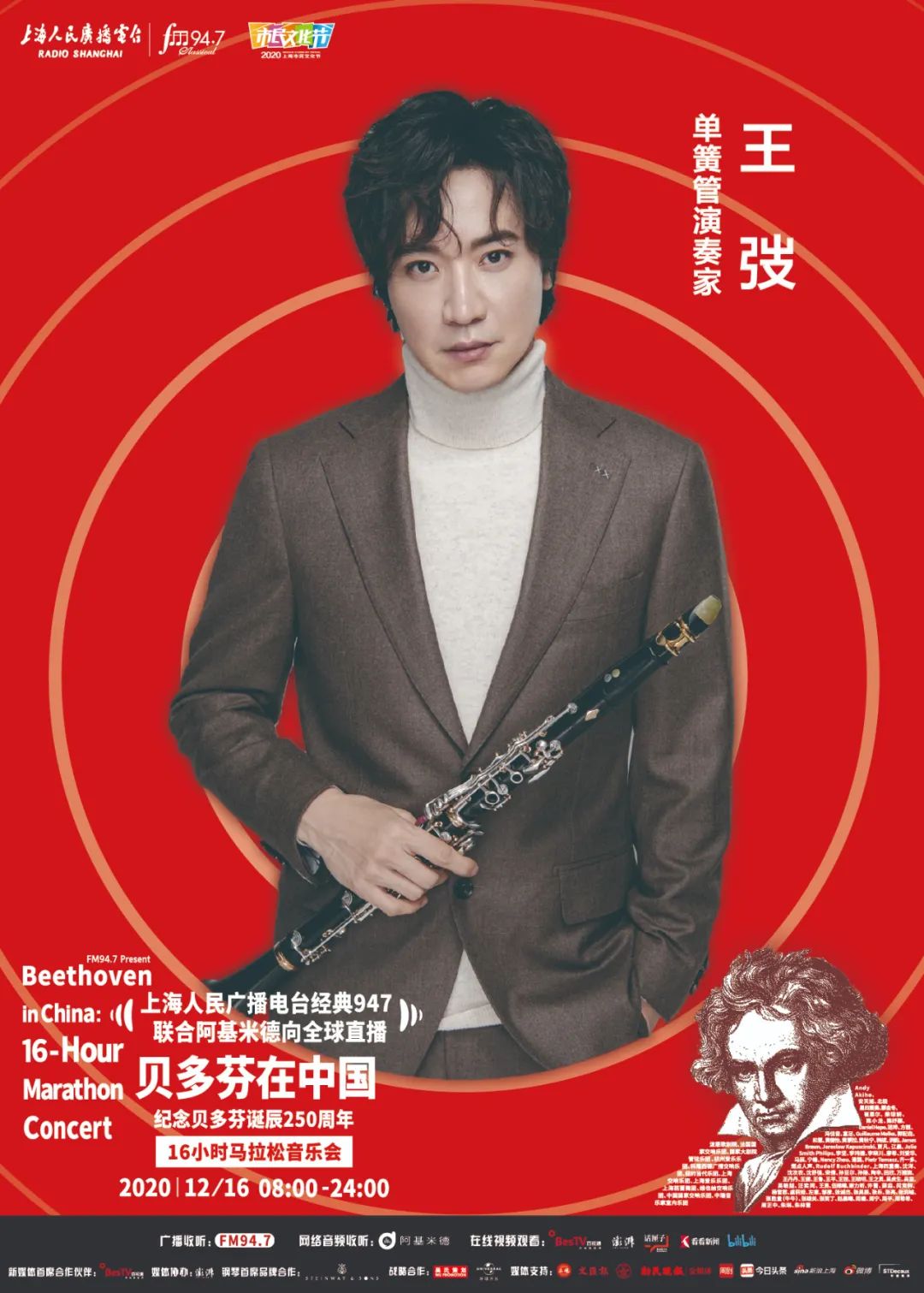 上海人民广播电台“经典947”频率联合阿基米德App、话匣子FM,将于2020年12月16日贝多芬诞辰纪念日当天,向全球同步直播《贝多芬在中国——纪念贝多芬诞辰250周年16小时马拉松音乐会》。作为2020上海市民文化节美育系列活动之一,此次马拉松音乐会通过“嘉宾访谈+现场演奏+音视频赏析”的形式,从音乐家、学者、乐评人、策划人、乐迷等多重视角,全方位展现贝多芬的音乐力量及人文精神,呈现古典音乐在中国的普及发展。今天将公布第八波参与的音乐家们
