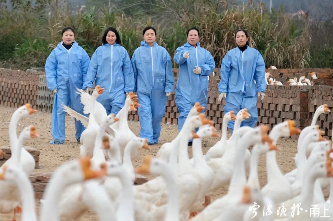这几天气温骤降,是冬季鹅病防治关键期。文杰大白鹅养殖基地有30万只大白鹅,今年疫情让企业减产约5000万元。陈淑芳和团队的姐妹们一起上门,帮助基地进行防治工作。