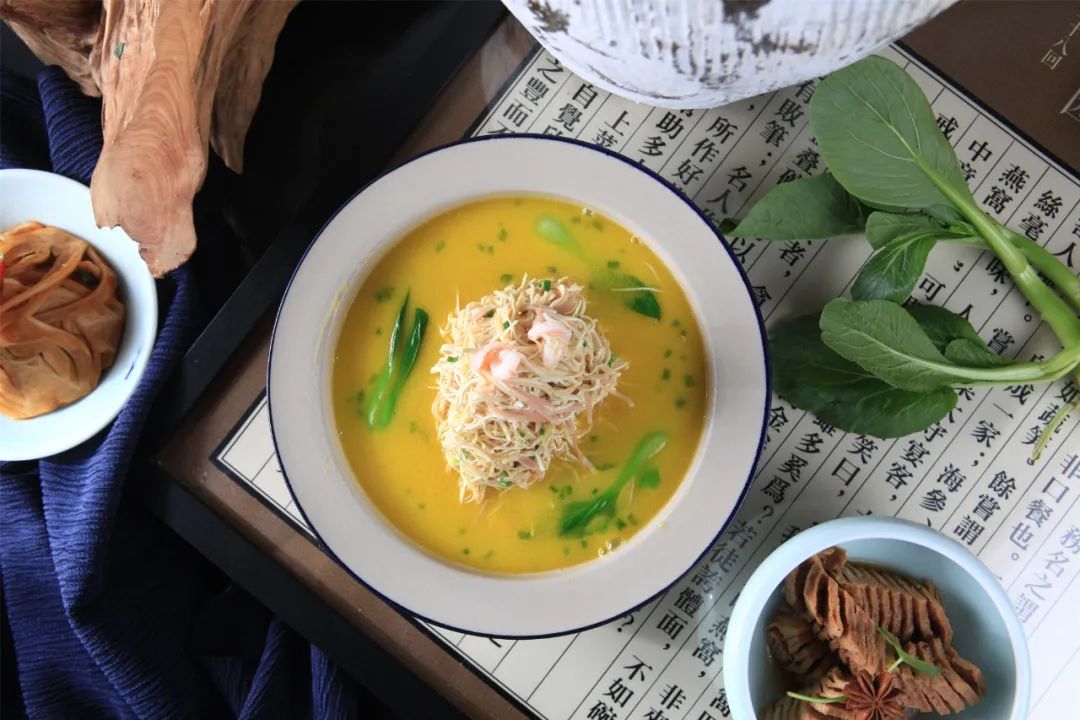 淮扬菜中,最经典的刀工菜要数“文思豆腐”,几近“鬼斧神工”。文思豆腐是一道有着悠久历史的汉族传统名菜,系清代乾隆年间扬州僧人文思和尚所创制。只见上千条长如牙签、细如粉丝的豆腐丝,漂浮游弋在清汤之中,轻盈、洁白、精致。吃起来,既爽滑柔润,又清鲜利口,通常吃货们还未回过神来,它已舒坦地抵达胃里。回味之际,让人禁不住叫好。