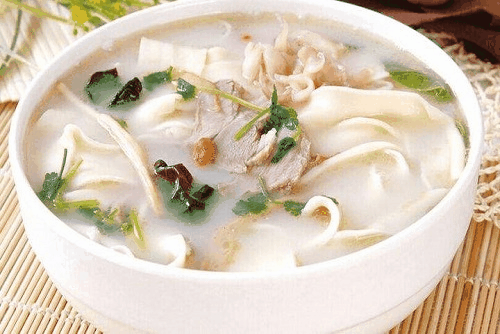 羊肉汤是一道菜品,制作原料主要有羊肉、辣椒油、胡椒面、盐、等,汤汁发白,肥而不腻,无膻味主要将羊骨头一起投入大锅里熬汤,再将切成砣的新鲜羊肉与清洗干净的羊杂一起投入汤锅中煮。煮熟后捞起来沥干,然后切成薄片放入滚开水里一氽,再倒入汤碗中,冲入滚烫雪白的羊汤水,撒上碧绿的葱花,一碗热气腾腾,香气四溢的羊肉汤就做成了。