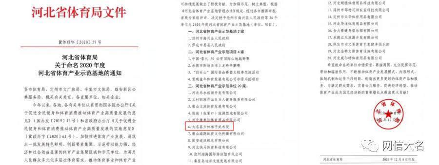 原标题:《大名县少林弟子武术院被命名为省体育产业示范单位》