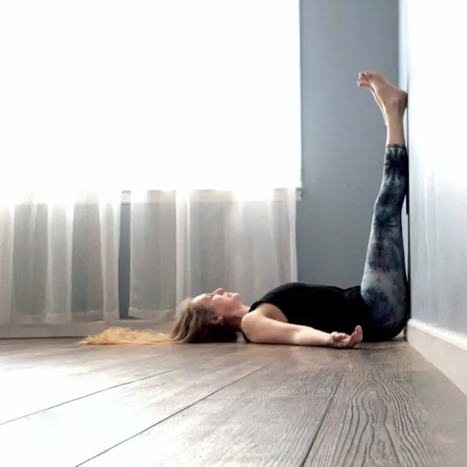 仰卧,将整个腿的后部贴在墙上,注意保持双腿伸直,让你的身体形成一个L形。至少保持30秒。重要的是,把注意力放在你的呼吸上。