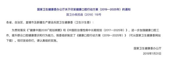 国家卫健委去年印发实施《健康口腔行动方案(2019-2025)》,卫生健康委网站