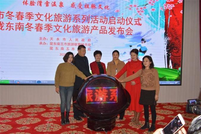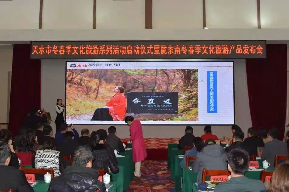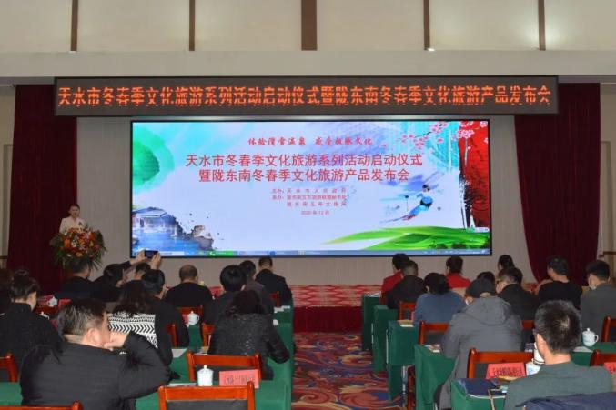 为认真贯彻甘肃省“三大旅游联盟”工作会议精神,共商陇东南旅游联盟合作发展大计,加快落实“丰收了·游甘肃”冬春文化旅游惠民活动,共同推动陇东南冬春季文化旅游市场持续复苏,12月10日,陇东南五市旅游联盟冬春季文化旅游产品发布会(年会)在天水麦积山温泉旅游酒店举行。平凉、天水、陇南、定西、庆阳文旅部门、重点旅游景区、旅行社和多家媒体,甘肃电视台、甘肃农民报、中国甘肃网、微游甘肃以及天水市属及驻市新闻网络媒体记者,特邀网络红人、旅游大V等,共100余人参加会议。市文体广电和旅游局副调研员张海兰带队参加并接受了有关媒体的采访,对我市冬春季文化旅游资源进行宣传。