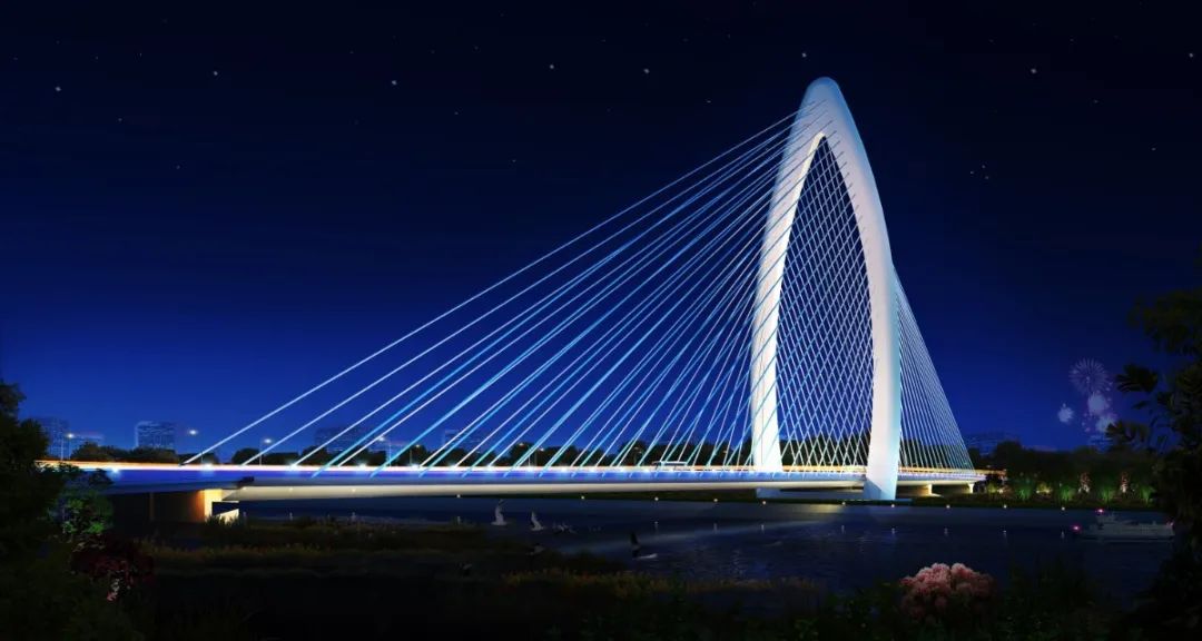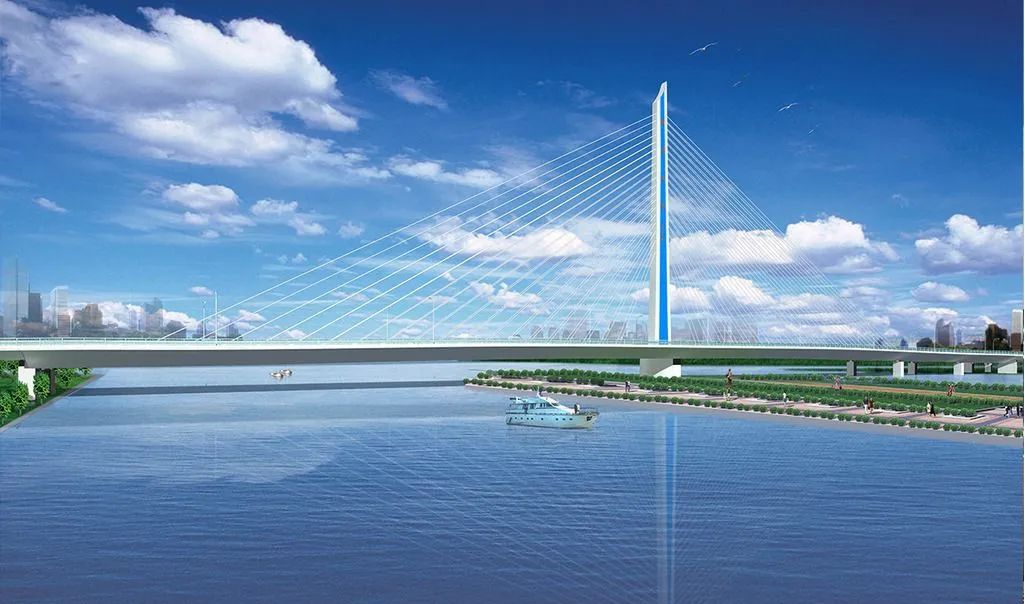 多塔斜拉桥斜拉桥通过体外拉索结构,将梁体上承担的重量由索传递给桥塔,达到减小梁体的梁高、增强跨越能力、增加桥下空间、减少引桥长度的目的。