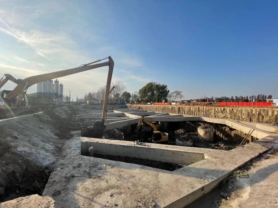 (现场第一道支护施工)东湖北路桥按一级公路标准建设,建成后该桥为双向4车道,设计时速为60公里/小时。该桥建成后,将极大地改善运河街道北面区域路网沟通,提升道路通行水平,对促进该区域经济和社会发展具有重要意义。