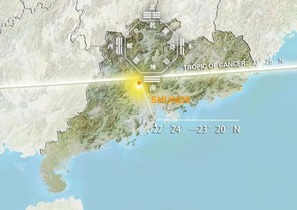 ▼ From an astronomical point of view, Shunde is right on the Tropic of Cancer. Every summer solstice day, the sun illuminates Shunde at a vertical angle, bringing it sufficient sunlight. Geographically, here is exactly the Pearl River Delta where land and sea intersect. All rivers here are at the same level as the sea level, and the water networks in the territory are criss-cross with plentiful rain supply.