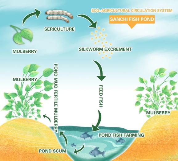 ▼ Ecological Cycle System of the Mulberry Fish Pond.