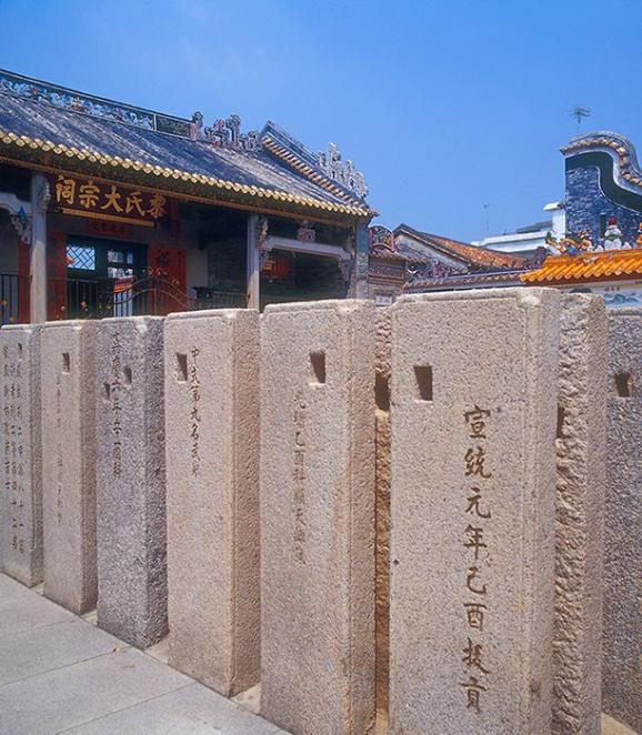 ▼ The flagpole stones stood in front of the ancestral hall, witnessed the fine social customs, family morality and clan culture in Shunde. Photographed by Yi Ming