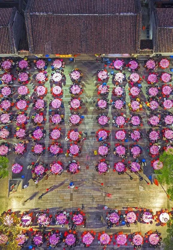 ▼ Dinner at the Ancestral Hall. Photographed by Yi Ming