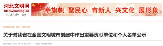 河北省文明办发布关于对我省在全国文明城市创建中作出重要贡献单位和个人名单的公示,快看看石家庄有哪些个人和集体上榜?↓↓↓