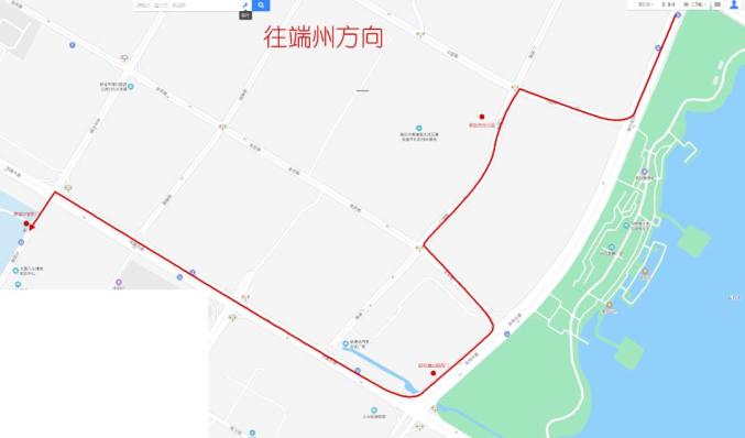 ▶调整路段为鼎湖中学东门至砚阳湖公园西门,其中往肇庆东站方向将从鼎湖中学东门沿吉庆大道直行,途径金花路,广场路,新区市民公园后、山田路,从山田路右转进入永利大道。