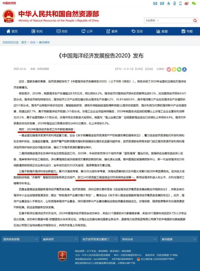 近日,国家发展改革委、自然资源部发布了《中国海洋经济发展报告2020》。《报告》指出,2019年,我国海洋经济各项工作不断取得突破,不断提升海洋科技创新能力:浙江LHD潮流能工程连续运行时间保持全球第一。