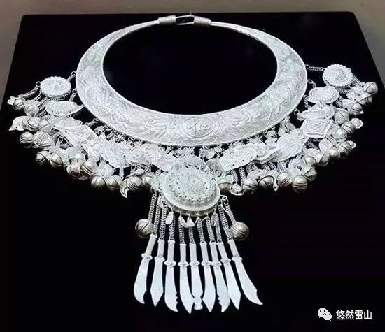 银饰是苗族最喜爱的传统饰物,主要用于妇女的装饰。品种多样,从头到脚,无处不饰,包括头饰、面饰、颈饰、肩饰、胸饰、腰饰、臂饰、脚饰、手饰等,彼此配合,体现出完美的整体装饰效果。