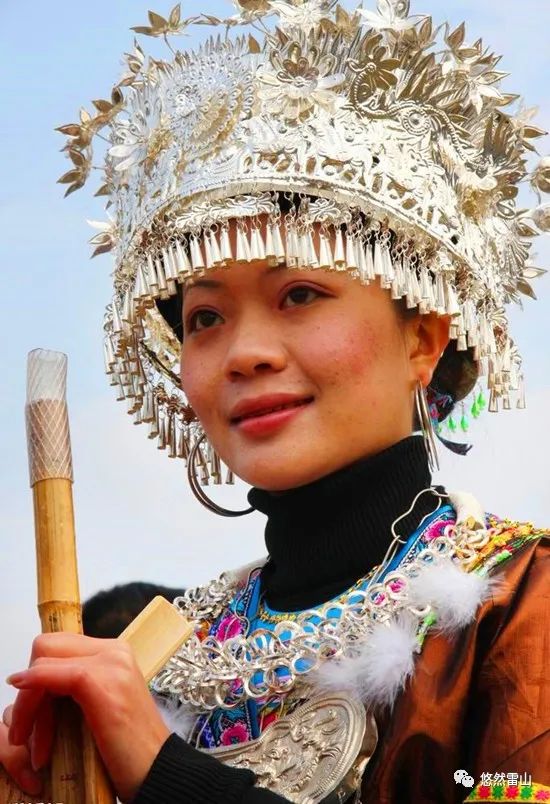 (佩戴银饰的苗族姑娘)银饰是苗家人财富的象征,尤其是苗乡年节,或婚嫁迎娶,苗寨便成了银的世界,这是苗家独有的“银饰文化”。