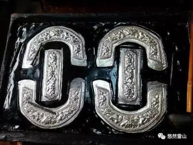 将银料放在“银窝”(坩埚)内,把坩埚放在风箱炉上,用木炭全部盖好,用风箱鼓风增高温度。银料全部溶化成液体后,把它倒在卡条状的钢槽内待其凝固。