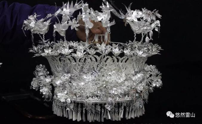 银凤冠和银花帽是头饰中的主要饰品,也是整套银饰系列之首,素有龙头凤尾之美称,其制作较为复杂,使用的小件饰品少则一百五十余件,多则达两百余件,价值昂贵。
