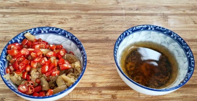 4、接下来准备小米辣,泡椒,将它们切成圈,泡椒和泡椒水是制作泡椒萝卜条的灵魂搭档,必不可少。大家可以根据自己的口味进行加减。
