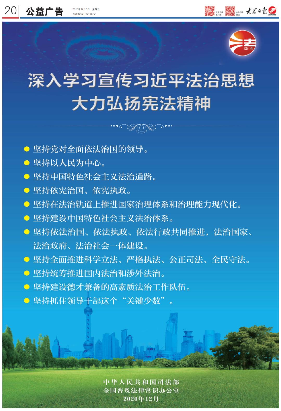 3.《人民日报》12月4日2版评论员文章《深入学习宣传习近平法治思想 大力弘扬宪法精神》;